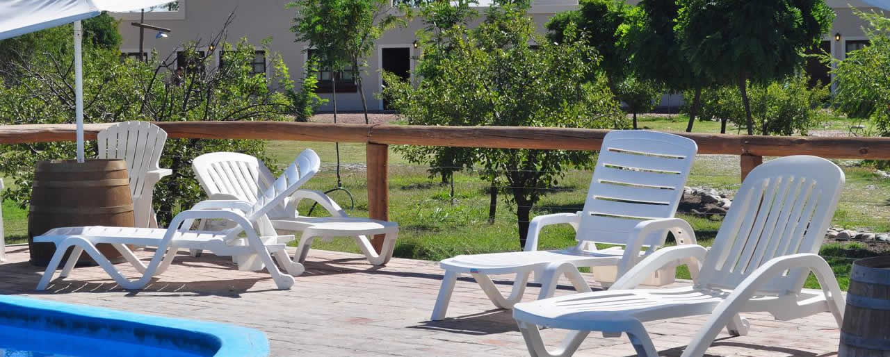 Las cabañas cuidadosamente dispuestas en un parque de 3 hectáreas entre viñedos y frutales, presentan un diseño estudiado para su confortable estadía.